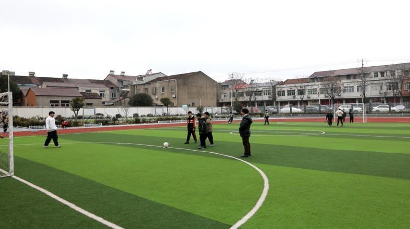 庐江县石头镇中心小学学生们正在踢足球。