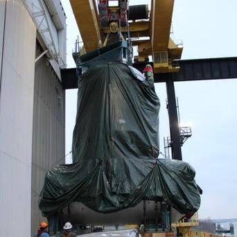 【福特级航母的核响应堆和玲珑一号响应堆的相比】第一张图是好意思国福特级航母首舰福特号的响应堆屏蔽箱还莫得封顶时的像片。看见屏蔽箱里的响应堆压力容器直径约略四米傍边。屏蔽箱里右上角是挥发器。左下角应该是稳压器。图二是A1B响应堆的挥发器。响应堆各大部件是分裂的。图三是也曾封顶的屏蔽箱。图四是玲珑一号的压力容器直径三米出面。后边王人是玲珑一号的部件。第五张图是玲珑一号的里面结构。第六、七张图是补水箱。第八张图是储压器。第九张图是冷却水疏水箱。