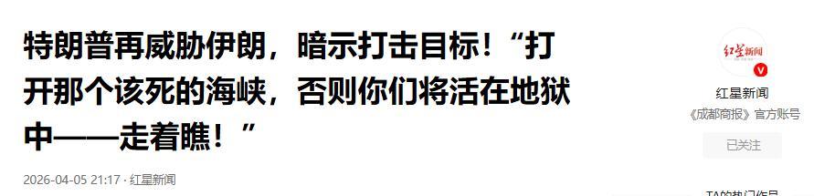 据环球时报音问,4月5日特朗普在酬酢媒体已而发文,条目伊朗大开霍尔木兹海峡,要是不这么作念的话,伊朗将“活在地狱中”。