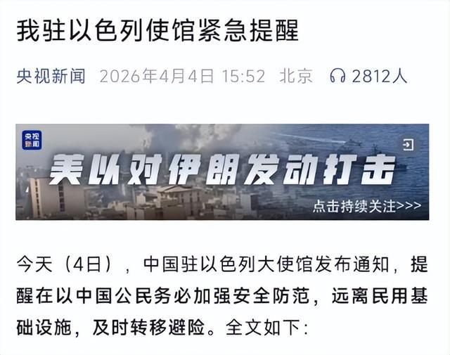 就在好意思伊突破剑拔弩张之际,中国驻以色列大使馆提前发声,给在以中国公民敲响了警钟。